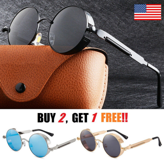 Polarized Retro round Sunglasses Vintage Gothic Steampunk Glasses Men Women USA