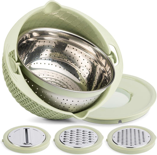 colander, Kitchen Strainer 4-in-1 Set - Rotating Colander, Fruit Bowl, Stainless Steel & Plas...