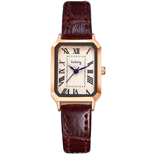 wrist watch, Women's Retro Rectangle Dial Watch - Classic Roman Numerals, Leather Band, Quart...