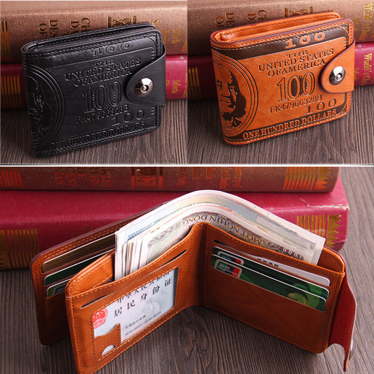 Men'S US 100 Dollar Bill Leather Wallets Bifold Photo Card Holder Handbag Clutch