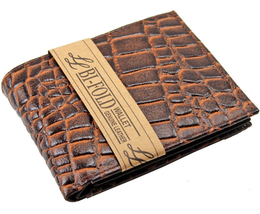 Men's Leather Bifold Wallet | Alligator Crocodile Print Window ID Credit Card Holder | Luxury...