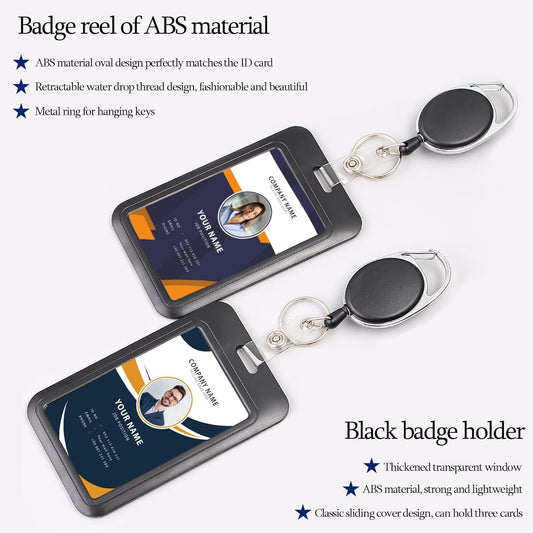 2 Pack Retractable ID Badge Holder Lanyard Heavy Duty Reel Keychain Clip ID Card