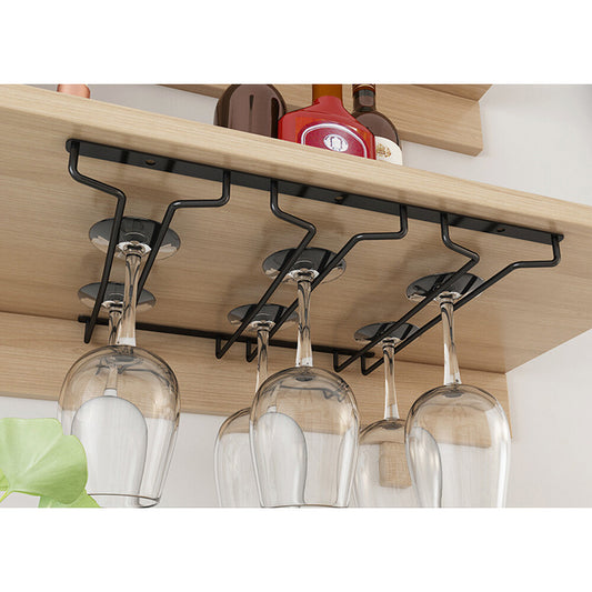 Wine Glass Rack under Cabinet Stemware Wine Cup Glass Holder 3 Rows- Black