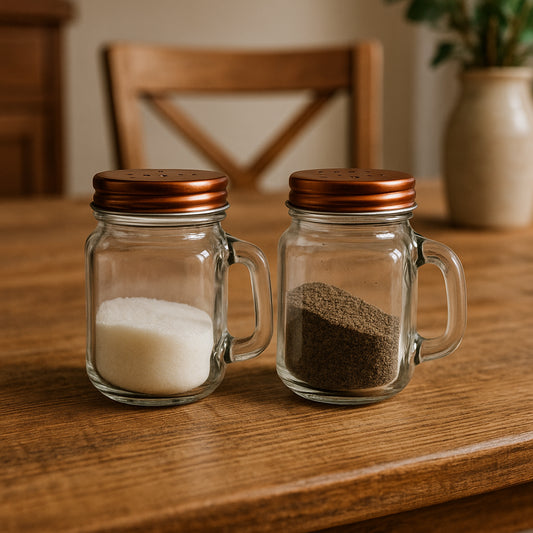 Retro Mason Jar Salt & Pepper Shaker Set – Clear Glass W/ Steel Lids, 3.25"