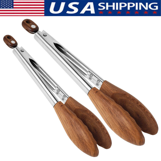 Walnut Wood Kitchen Tongs Food Serving Grill Multi Purpose Cooking Tongs