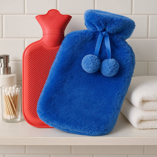 Rubber Hot Water Bottle with Soft Plush Fleece Cover 2000Ml (67 Fl. Oz) Blue