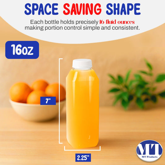 MT Products Empty Clear PET Plastic Juice Bottles with Caps 16 Oz - Pack of 12