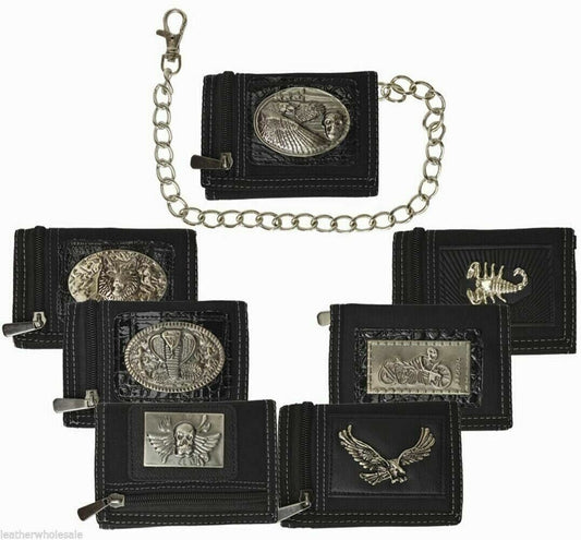 Men’s Trifold Chain Wallet | Black Leather Biker, Trucker, Motorcycle Rider Wallet – Rugged &...