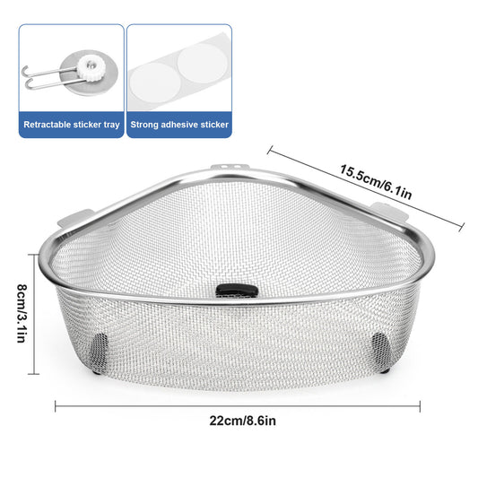 Stainless Steel Sink Strainer Basket – Triangle Drain Rack, Kitchen Food Filter | Easy Clean, Pre...