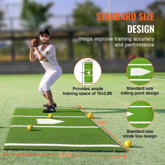 Baseball Softball Hitting Mat 10x3.8FT – Non-Slip Batting Mat w/Stride Lines, Thick Foam Backing,...