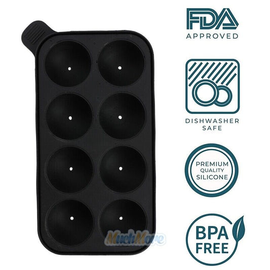 Silicone Ice Cube Ball Maker 8 Large Round Ice Sphere Molds for Cocktails Reusable Tray with Funn...