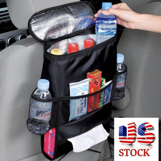 Car Seat Back Storage Bag Organizer | Insulated Food & Drink Holder | Multi-Pocket for Snacks...