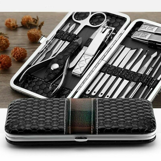 18PCS Professional Manicure Pedicure Case Set, Stainless Steel Nail Clippers Tools, Portable Kit ...