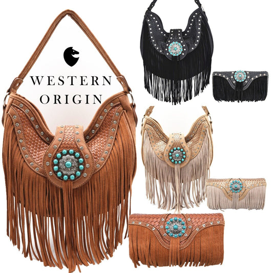 Western Style Purse & Wallet Set –Vegan Leather Shoulder Bag with Concealed Carry Pocket, Pho...