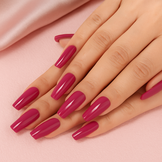 press nails, Shiny Rose Red Long Press On Nails - 24PCS Full Cover Fake Nails with Self Adhesive ...