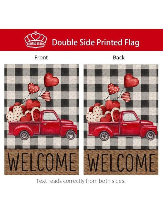 Valentine’s Day Garden Flag, Double-Sided Burlap Flag with Love Heart & Red Truck | Durable 1...