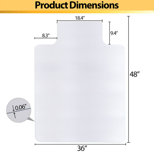 Protect Hard Floors with 48"x36" Office Chair Mat – Durable Clear PVC Mat with Lip for ...