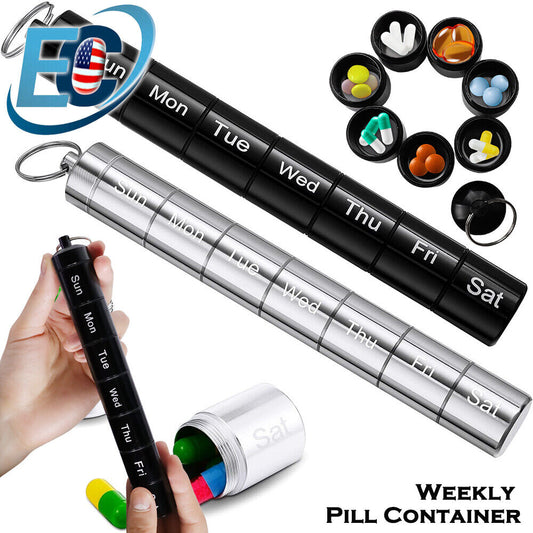 7 Day Weekly Pill Organizer Large Capacity, Durable Medical Aluminum, Waterproof & Moisture-P...