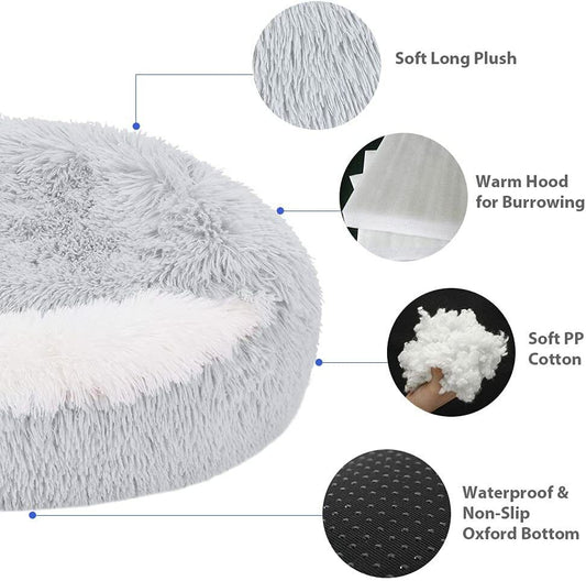 Comfortable Soft Plush Cat Bed Cave – Hooded Pet Bed for Cats & Small Dogs, Self-Warming, Mac...