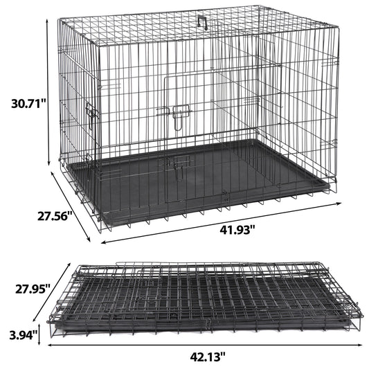 42" Folding Metal Dog Crate Kennel - Double Door Pet Cage with Tray, Secure Slide-Bolt Latch...