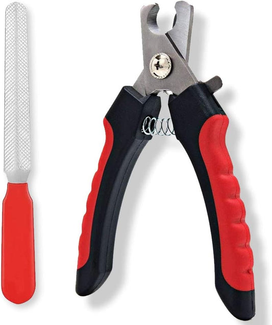 Pet Nail Clippers & File Set - Safe Stainless Steel Trimmer for Dogs Cats, Birds, Anti-Slip H...