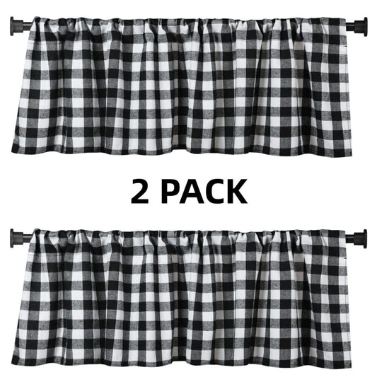 Farmhouse Kitchen 2 Pack Buffalo Check Plaid Window Valances White and Black Farmhouse