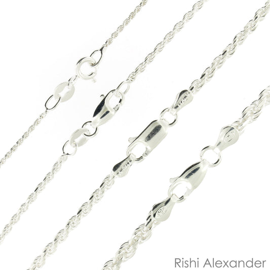 925 Sterling Silver Diamond Cut Rope Chain Necklace .925 Italy All Sizes