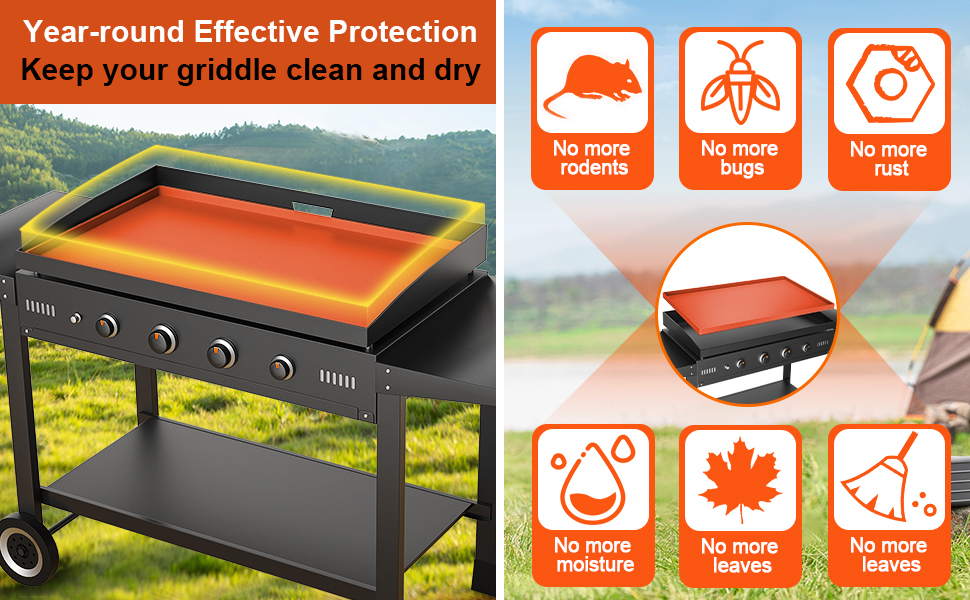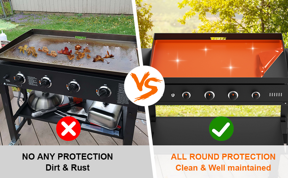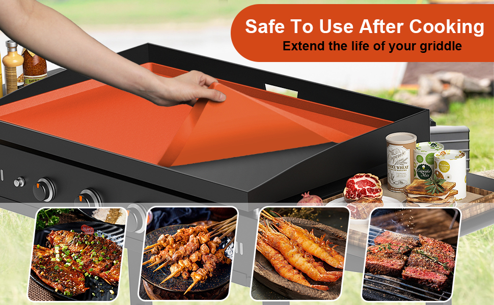 EXTEND THE LIFE OF YOUR GRILL: Our silicone grill cover surface seal can effectively prevents moisture, rust and oxidation after cooking, and extend the lifespan of your griddle.