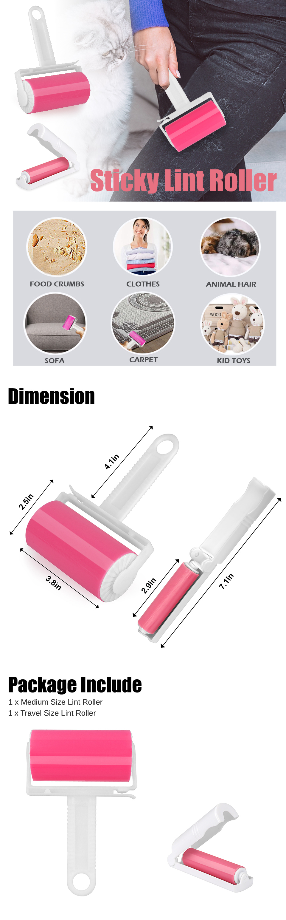 💖Easy to Use:The Lint roller Remover can clean your clothes without change refills. Optimal adhesive has no damage to the fabric. The sticky roller only removes the hair or chips that you want to remove.