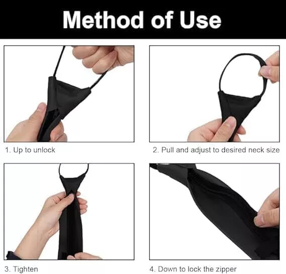 3× Men's Black PreTied Necktie Men Adjustable Office Zipper Neck Tie Gifts USA