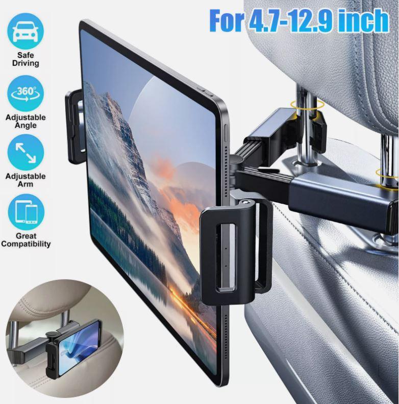 Tired of restless kids or holding devices for hours? This 360° car tablet holder transforms your backseat into a mobile theater, solving entertainment woes during road trips. Stay focused on driving while passengers enjoy a secure, hands-free viewing experience.