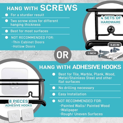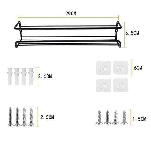 Wall Storage Rack made of sturdy thick metal steel, painting with black, won’t rust. Supports your home kitchen small items. The Surface Is Treated With Matte Treatment. Safe And Healthy. It's A Good Organizer.