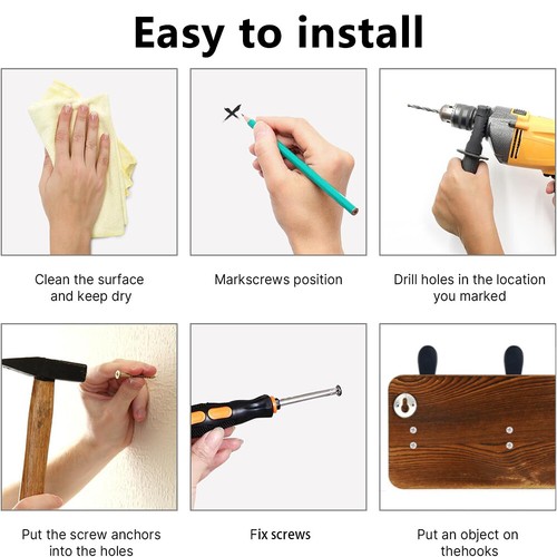 Easily-installed hook rack,including 1 x wall coat hanger, and mounting hardwares.The boards are cut by hand, and the color and grain of each board may not be the same