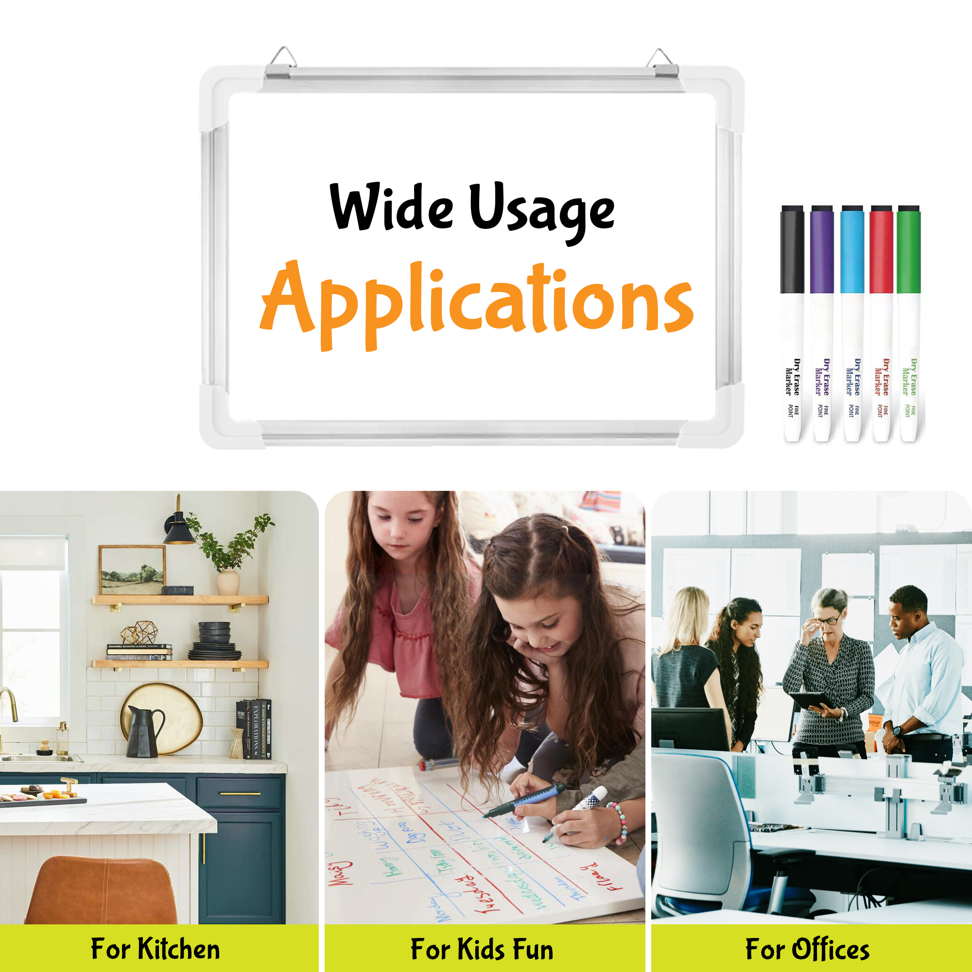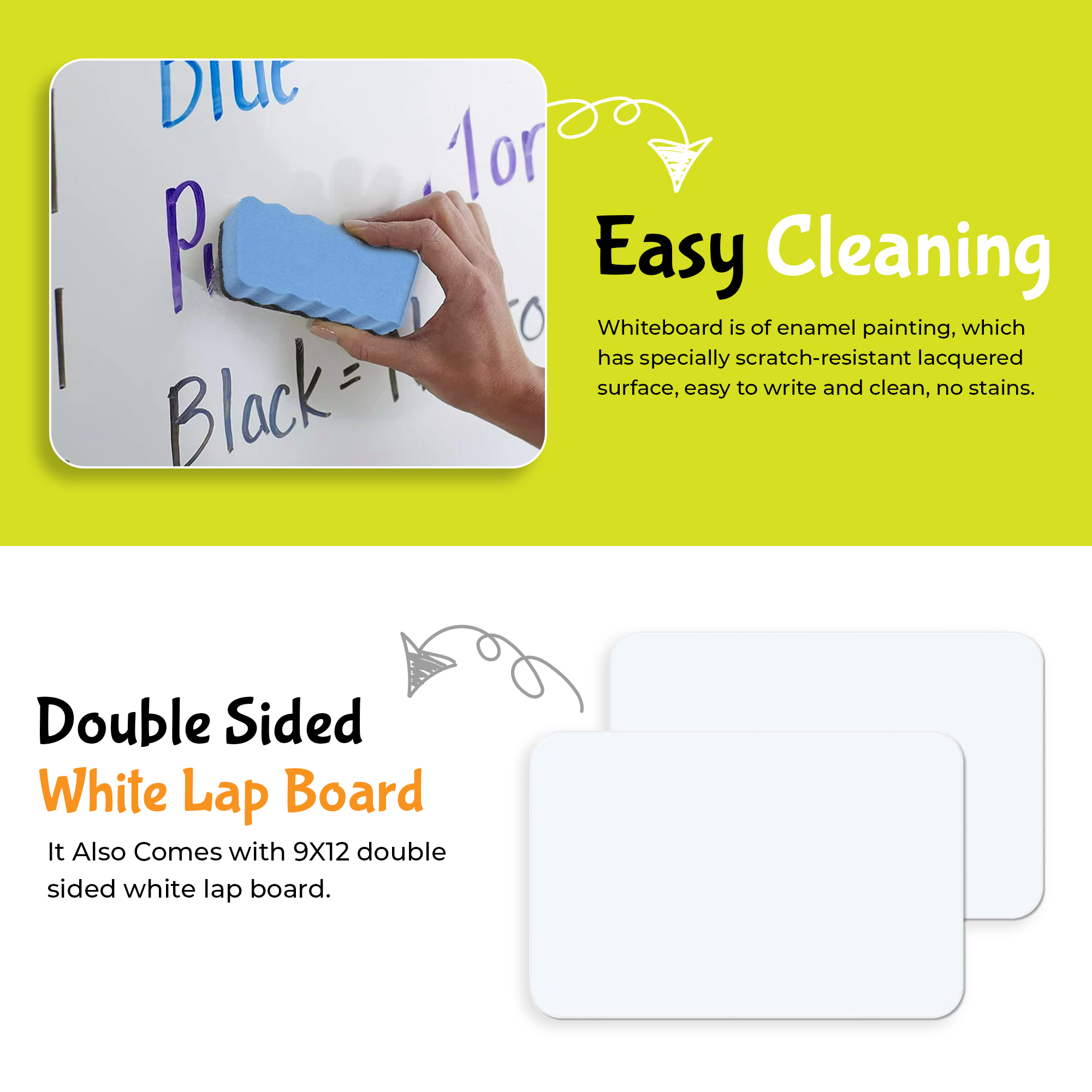 GREAT VALUE WHITEBOARD SET: Set Includes 5 Colorful Dry-Erase Markers and 1 Eraser Plus an extra Whiteboard!, to offer you everything you need to write in one COMPLETE SET! Save money and time on buying separately all your writing or drawing tools & make the right choice with a great value dry-erase board kit!