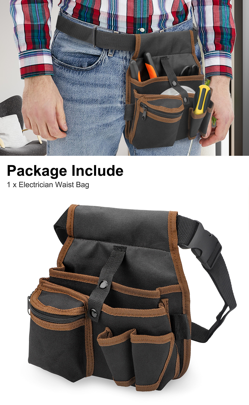 👍【Flexible adjustment】The tool belt pouches also come with a high-tenacity adjustable waist belt. If you need to do some electrical work for a long time, it will be more effortless and comfortable to put on the adjustable belt and hang the electrician's pocket tool pouch on the side or front of your body.
