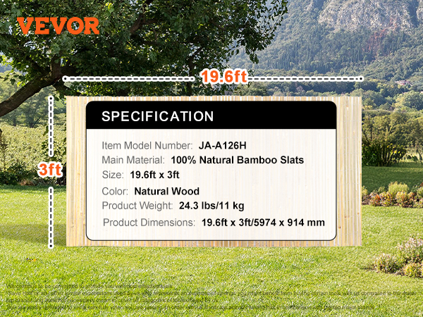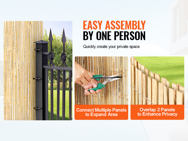 Easy Installation: Simply unpack and attach the bamboo fencing 6ft high roll to any railing or post with suitable fasteners (like zip ties or wire). Easy to set up on flat or curved surfaces, saving time and effort. Please measure your space accurately before purchasing. The fence surface may have minor splinters; we recommend wearing gloves during installation.