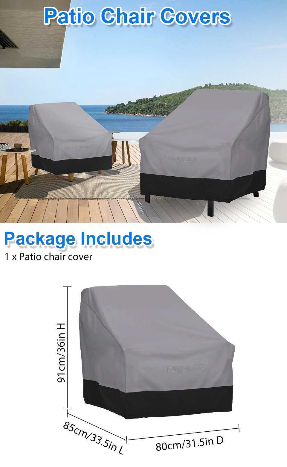 π Super Premium Material: Patio chair covers is made of 210 Heavy Duty Oxford fabric and PVC layer,featurs weather-resistant, waterproof & dust-proof.Can maximally protect your chair from outdoor elements like sun, dirt, rain, winds and snow etc.