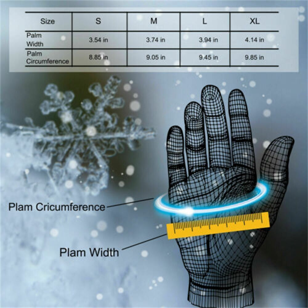 --High quality upgrade material: made of high quality waterproof Lycra, soft and comfortable to wear; The zipper closes and is good for keeping warm when you text or type. --3 finger sensitive touch screen:3 finger is made of conductive fiber, used on all touchscreen devices, not exposing hands in cold weather, but keeping fingers warm and dry when used. --Anti-slip design: the palm lines and fingers are designed with anti-slip silica gel, which has better grip on the ground in rainy days, abrasion and anti-slip, and provides better working experience. --360-degree warmth: Double shirt stretch wrist zipper, gloves close to the skin, in winter outdoor exercise is not affected by dust, debris, snow, cold wind. Wrists are lined with velvet to keep your hands as warm as possible. --Suitable for outdoor activities. Stylish, beautiful, comfortable and high quality men's winter gloves are perfect for cold winter leisure, riding, driving, hiking, running, biking, snow, landscaping, cross-country skiing, snowmobiling and other winter outdoor activities. Size S M L XL Middle Finger Length 7.5 8 8.5 9 Palm Width 9 9.5 10 10.5 Palm Circumference 22 23 24 25