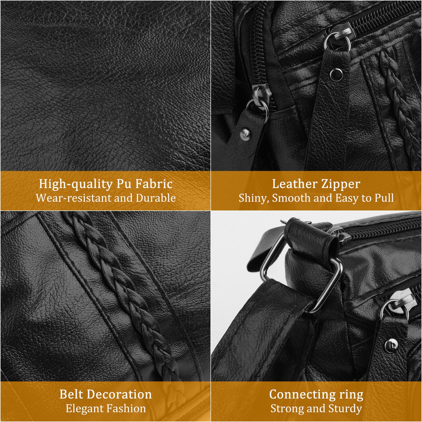 PU Leather Crossbody Shoulder Bag – Black, Durable & Multi-Pocket | Stylish & Versatile Everyday Purse Item Description: Key Features: Soft-touch, wear-resistant PU leather material 2 front pockets, 1 main compartment, 1 inner pocket Detachable strap for shoulder or crossbody wear Lightweight and easy to clean Perfect for everyday use and on-the-go lifestyles Item Specifics: